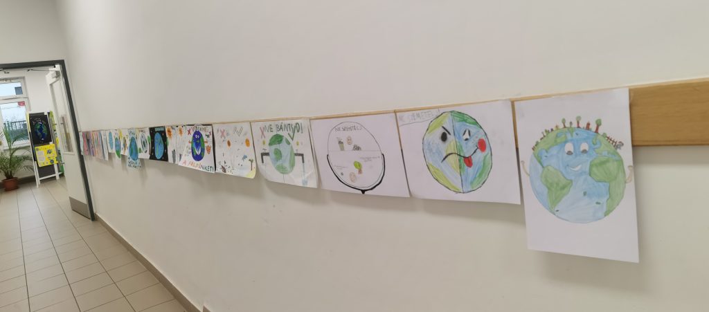 Az alsós osztályok önállóan foglalkoztak a témakör nyújtotta lehetőségekkel. Munkájuk gyümölcseként minden osztály egy plakátot készített. Az elkészült plakátokból kiállítást rendeztünk a folyosón. A gyerekek élvezettel nézték meg a műveket. A Föld napja alkalmából egy rajzpályázatot is meghirdettünk. Rengeteg gyermek készített szebbnél szebb rajzokat. Ezekkel a rajzokkal díszítettük a folyosót. A lelkes gyermekek apró jutalomban részesülhettek.