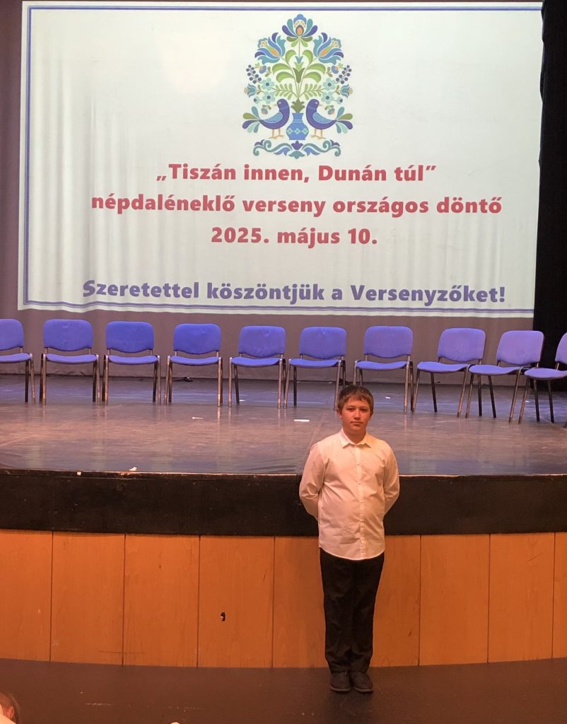 2025. május 10-én, Budapesten, a Kőrösi Csoma Sándor Kőbányai Kulturális Központban rendezték meg a „Tiszán innen, Dunán túl” Országos Népdaléneklési Minősítő Versenyt. Gulyás Attila Gábor, iskolánk hatodik osztályos tanulója, a kerületi, majd a fővárosi kiemelt arany után az országos megmérettetésen ezüst minősítést kapott. Az ország területéről huszonnégy induló volt Attila csoportjában. Gratulálunk Attila, nagyon büszkék vagyunk a sikereidre! Felkészítő tanára: Kerekes Éva