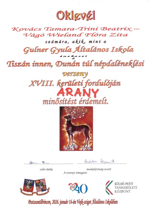Az idei Kerületi Népdaléneklő Verseny 2026. január 16-án került megrendezésre a Vajk-Sziget Általános Iskolában, melyen nyolc iskola vett részt.