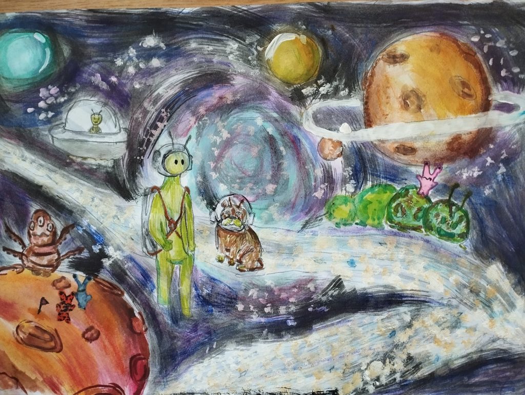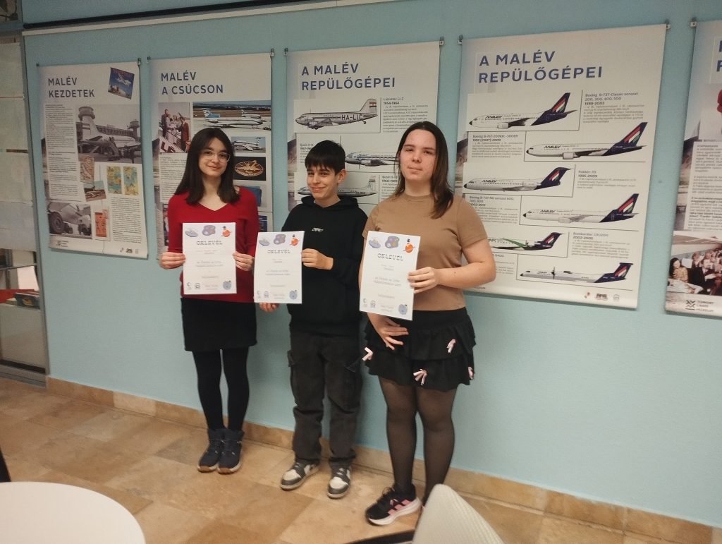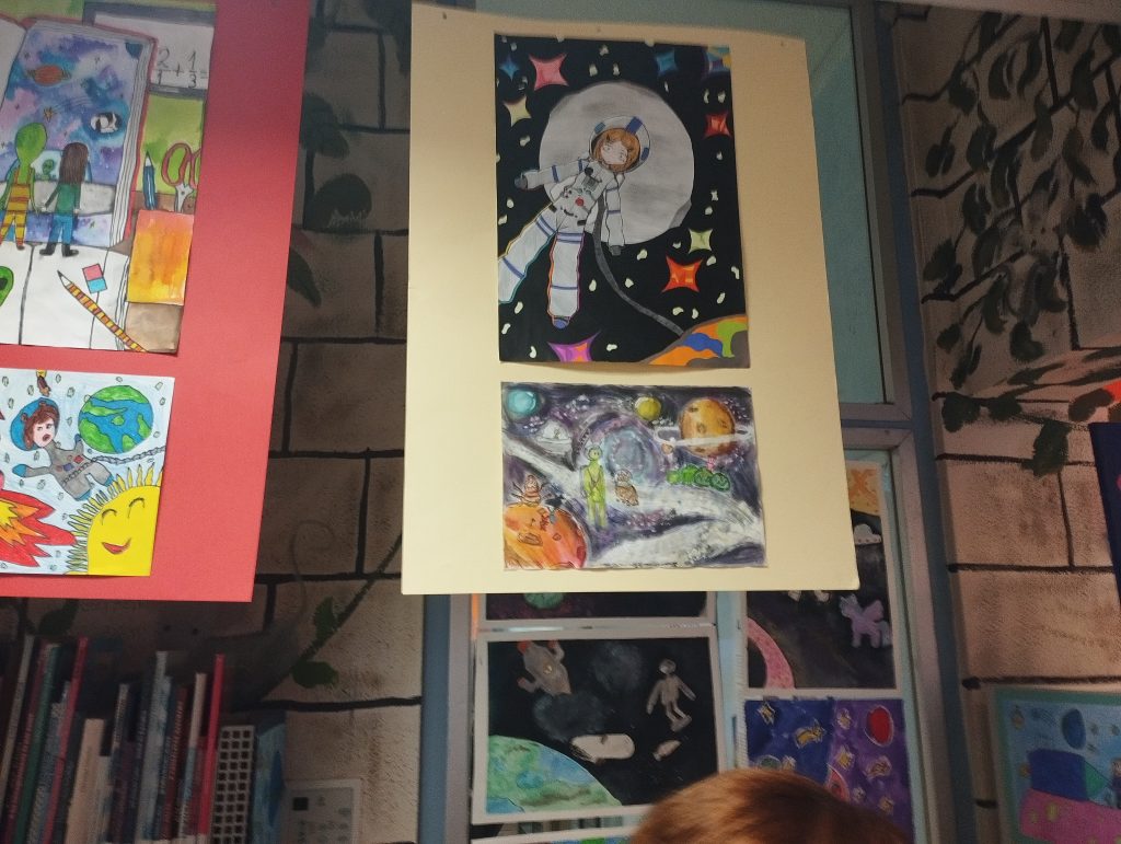 A Lőrinci Nagykönyvtár Utazás az űrbe című pályázatára rajszakköröseink -a pályázat kiíróinak szavaival élve -három fantasztikus munkát készítettek. Szakkörön, valamint rajz órán, Frech’ Gábor bácsival is kitartóan, színvonalasan dolgoztak, alkottak, így mindhárom munka díjazott lett. A február 25-én, szerdán 17 órakor megtartott ünnepélyes eredményhirdetésen az alkotásokat Baár Tünde zsűrielnök értékelte szakértő módon, dicsérve a tehetséges tanulókat. Nemes Eszter, Bihari Bence és Kuczora-Koralevicz Hanna 7.b osztályos tanulók elsöprő sikert arattak: a 7-8-os kategóriában Bence és Hanna harmadik helyezett lett, Eszter pedig első helyezést ért el! Munkáik a könyvtár emeletén berendezett kiállításon tekinthetők meg, a pályázatra beérkezett több mint kétszáz rajz között. Gratulálunk a szép eredményhez! Sánta Ferenc Imréné Császár Emőke